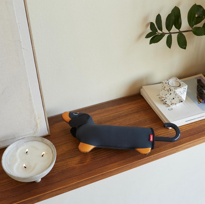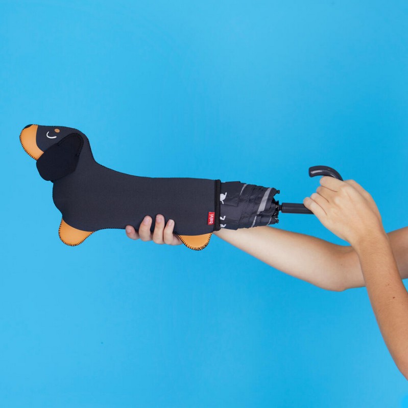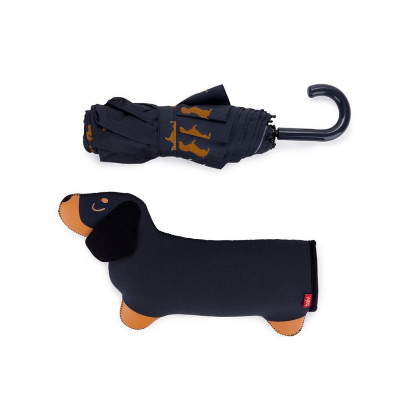 Ombrello pieghevole con astuccio bassotto nero
