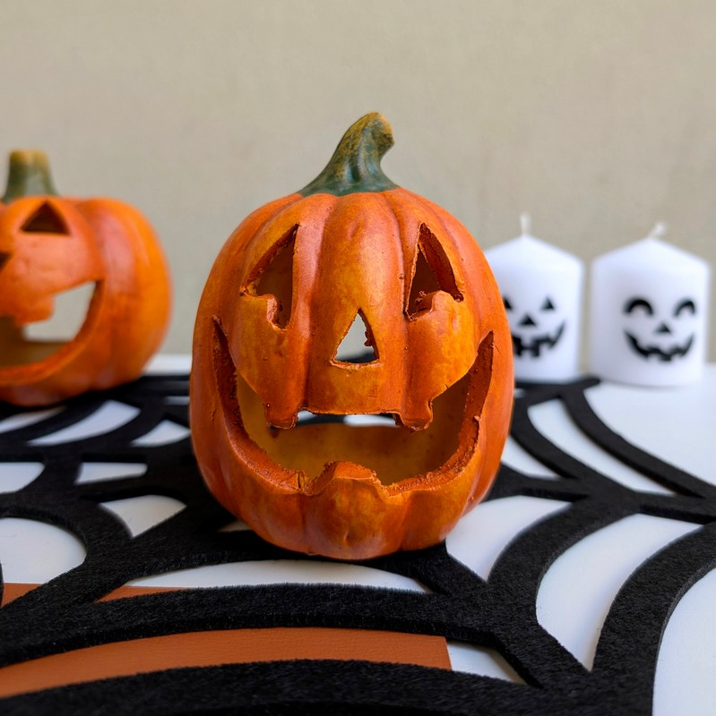 Lanterna arancione chiaro a forma di zucca di Halloween in ceramica