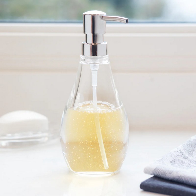 Dispenser per sapone bombato in materiale acrilico trasparente e resistente