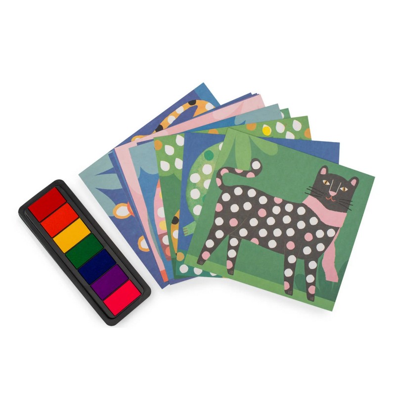 Un modo giocoso e sensoriale di esprimersi con le dita! Utilizza il tampone di inchiostro in 7 colori per dipingere le 10 illustrazioni di animali, con le dita.