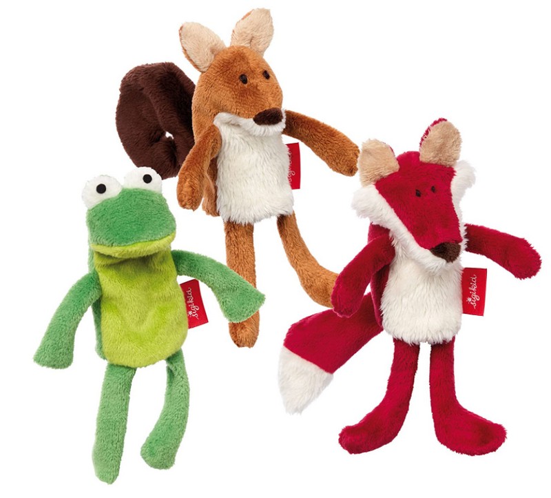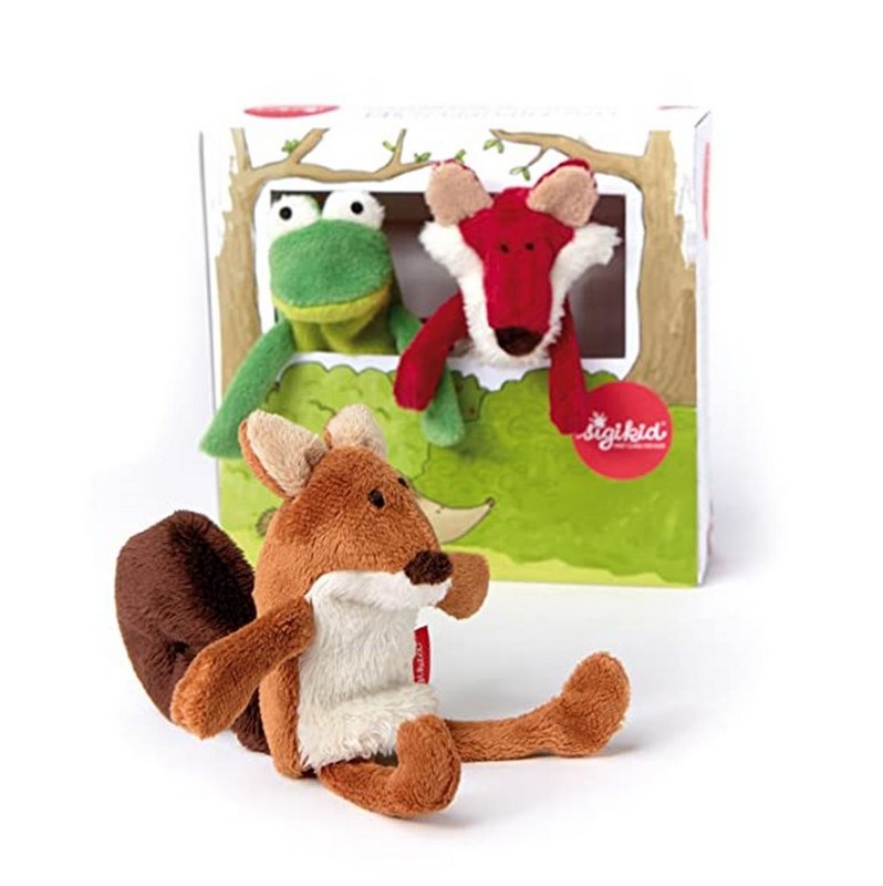 Set da 3 marionette da dito a tema animali del bosco (scoiattolo, rana e volpe)