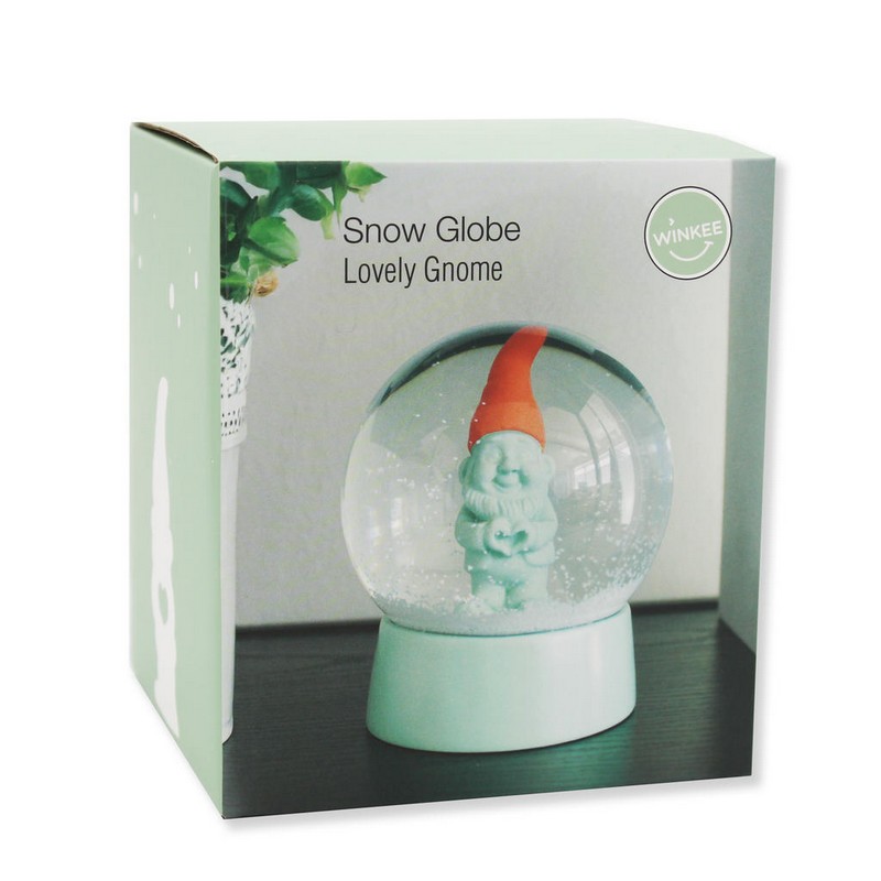 Gnomo che fa il cuore con le mani, in sfera di vetro stile boule de neige, perfetto come idea regalo di San Valentino
