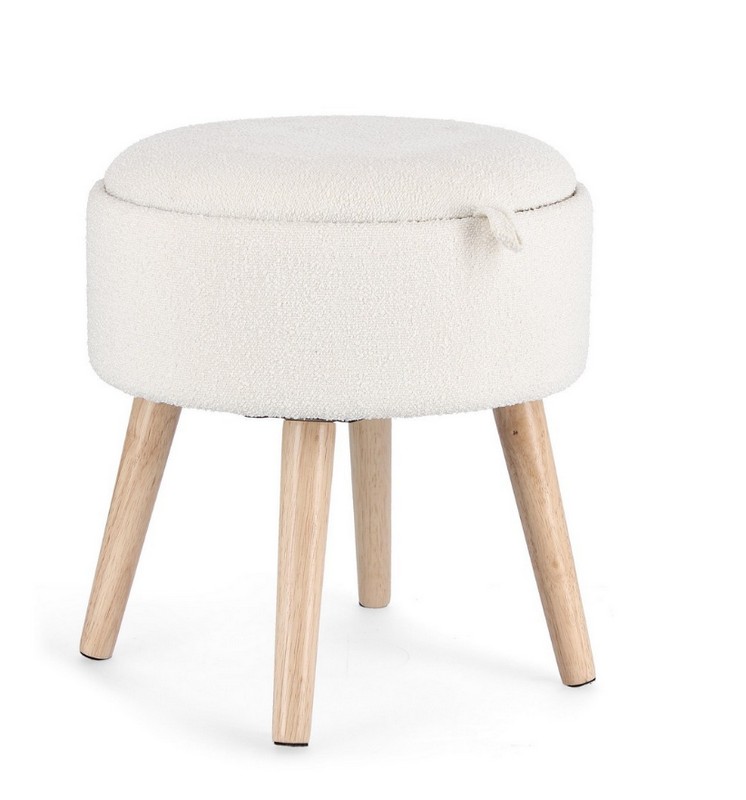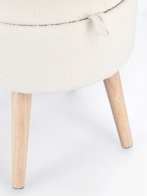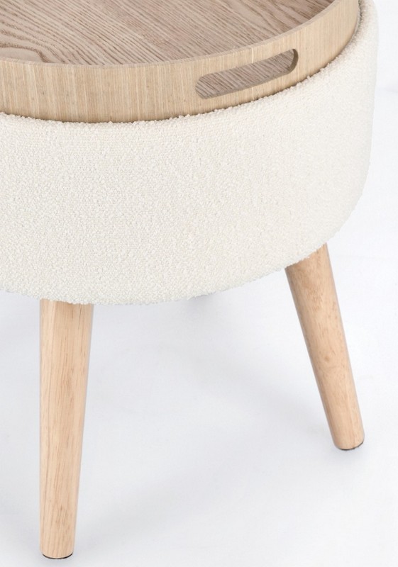 Struttura in mdf e compensato. vassoio in legno di frassino, rivestimento in poliestere effetto bouclé, gambe da assemblare.