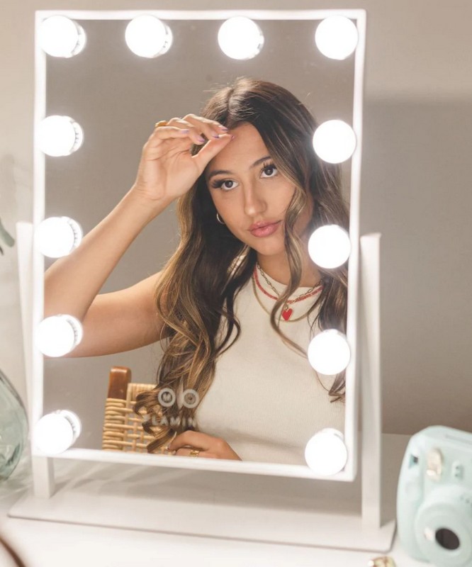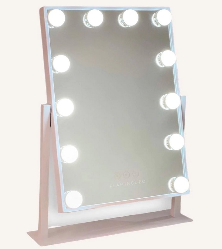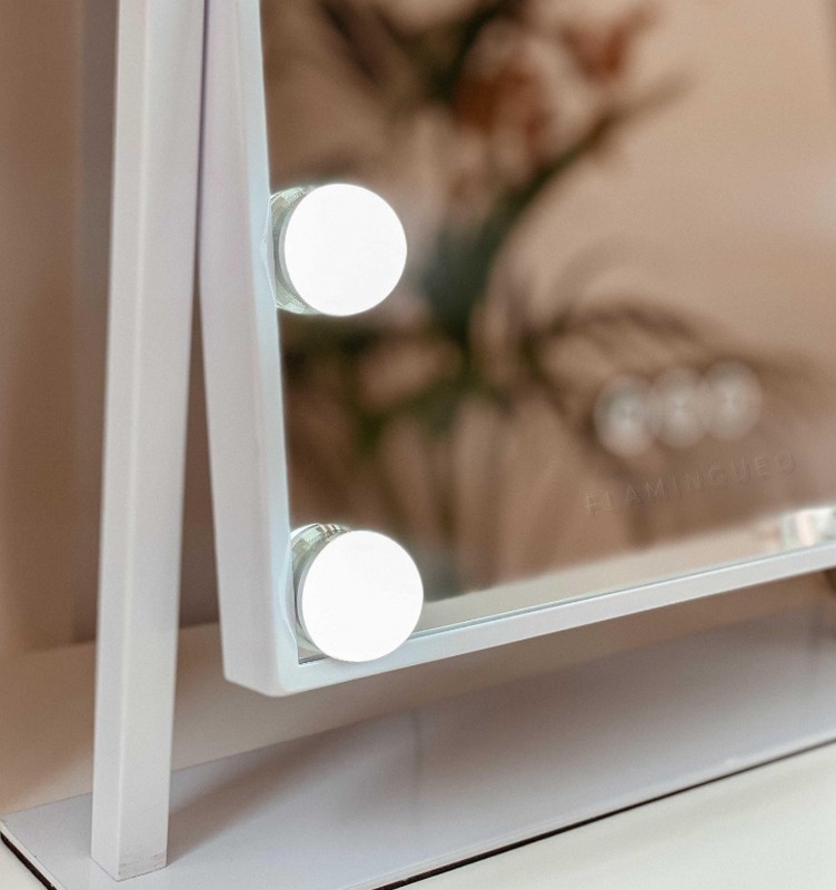 Specchio luminoso da appoggio con lampadine per truccarsi