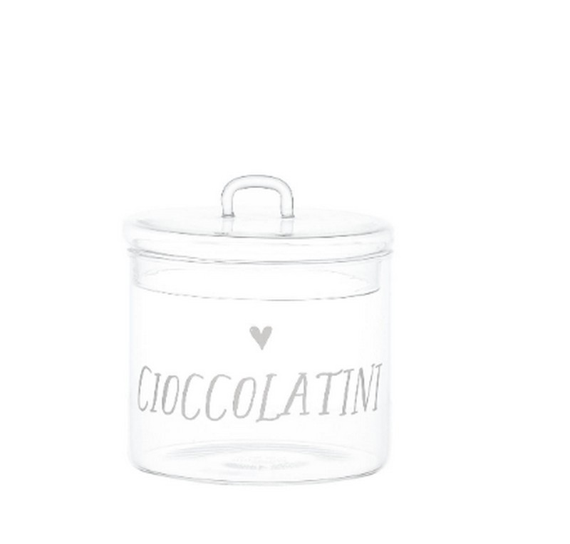 Barattolo in vetro borosilicato decorato con cuore e scritta "Cioccolatini"