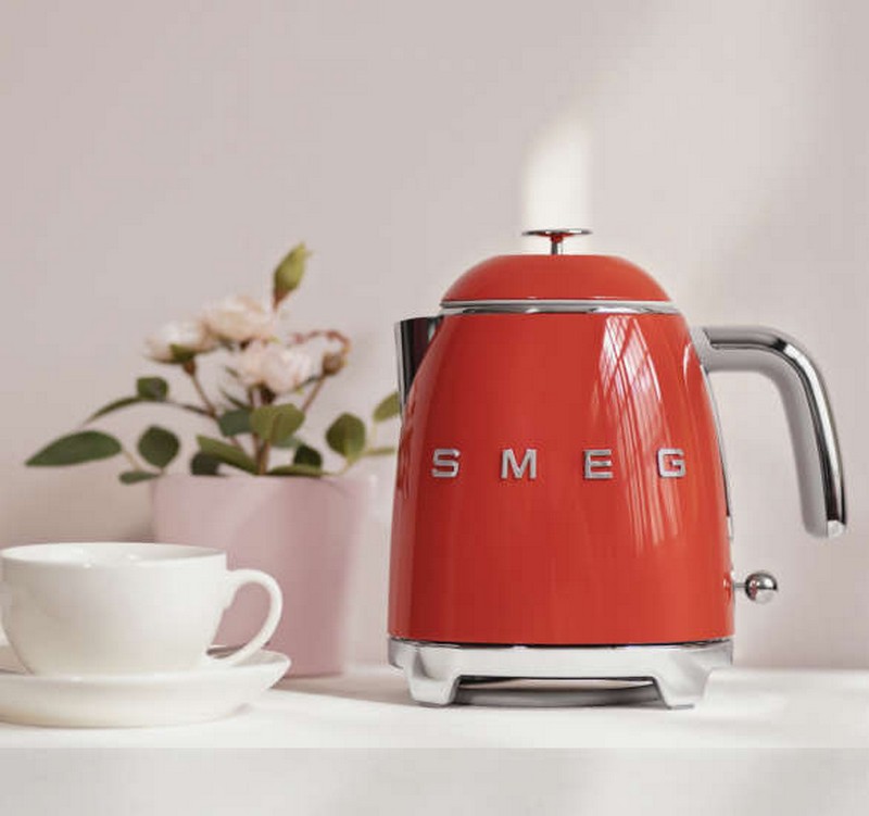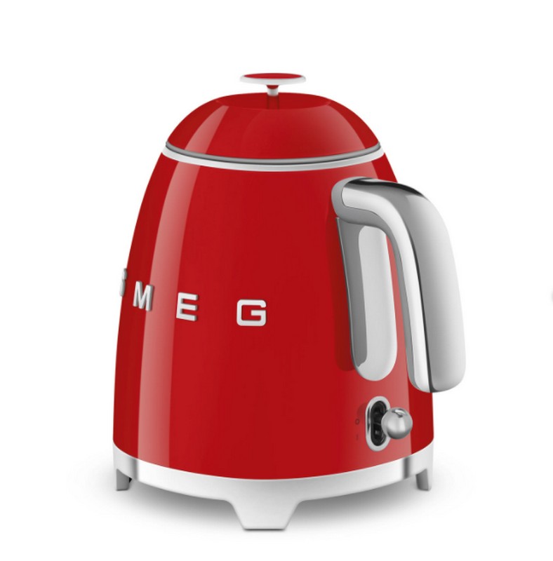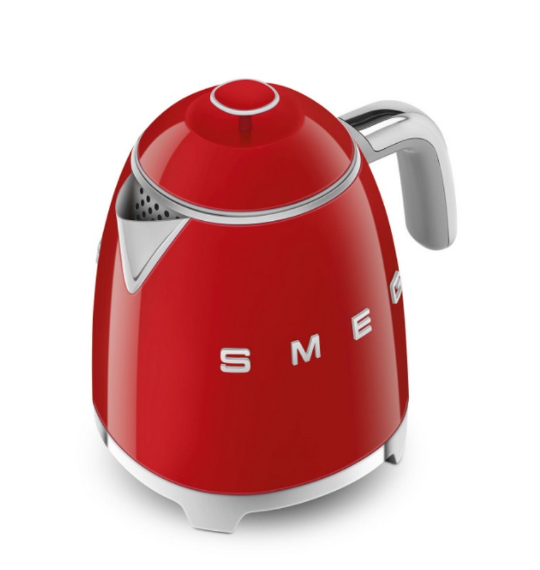 Bollitore mini da 800 ml Smeg di colore rossoCorpo in acciaio inox, base pratica con piedini antiscivolo e filtro anticalcare rimovibile e lavabile.Capacità: 0.8 lt / 3 tazzeDimensione: 20 x 20 x 15.2 cm
