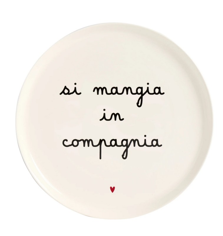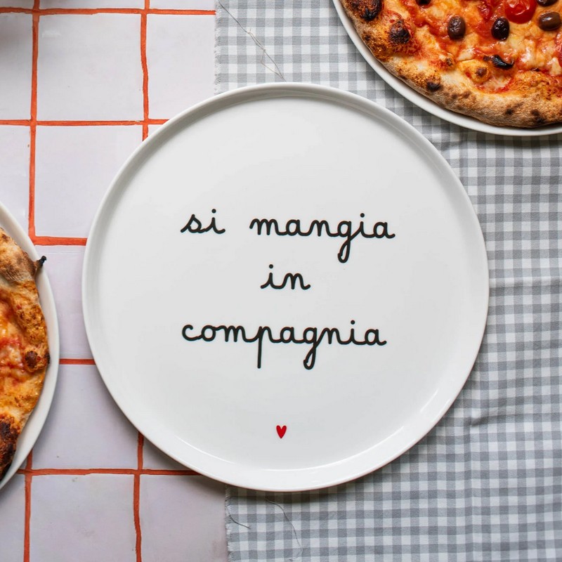 Piatto pizza in gres decoro Si mangia in compagnia 31,5 cm