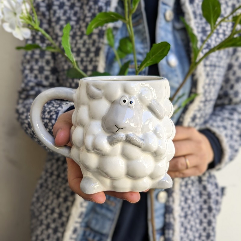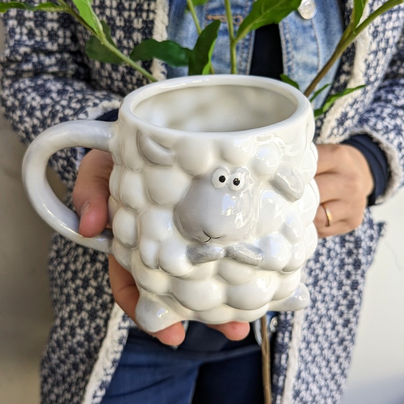 Tazza mug a forma di pecora con pelliccia in rilievo