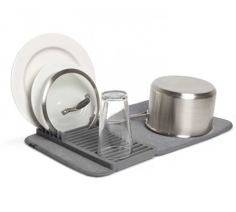 Scolapiatti pieghevole con tappetino assorbente in microfibra color beige, un utilissimo regalo uomo e donna