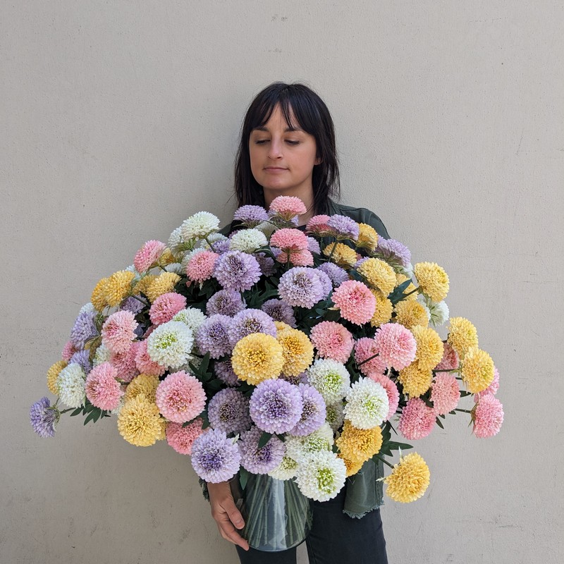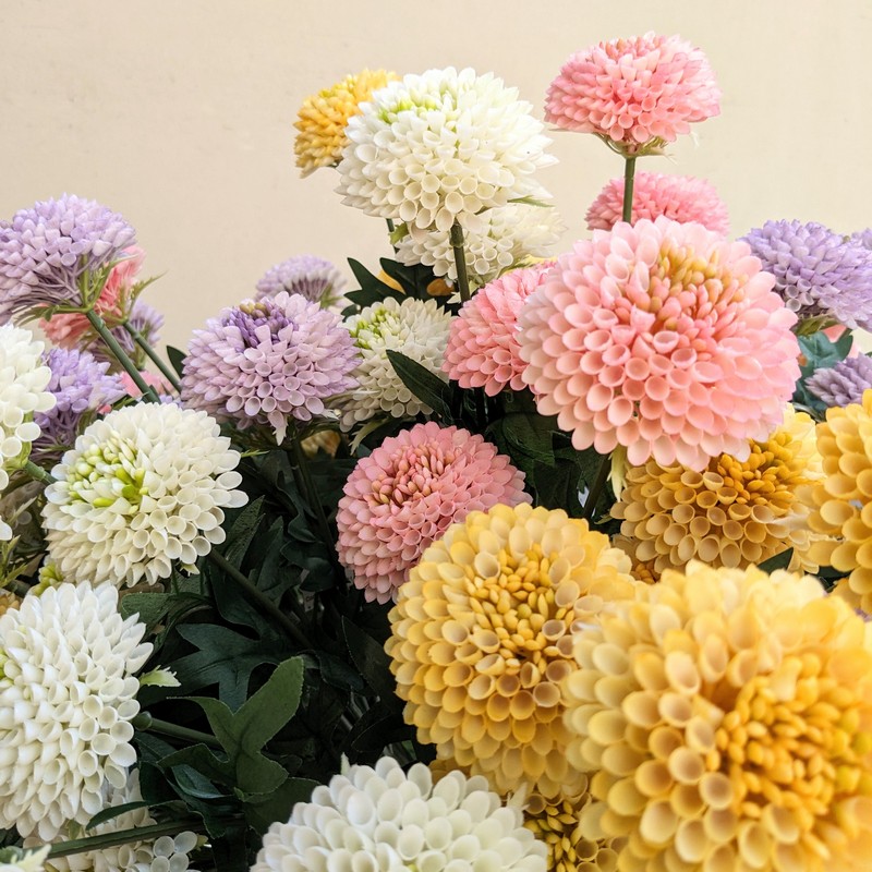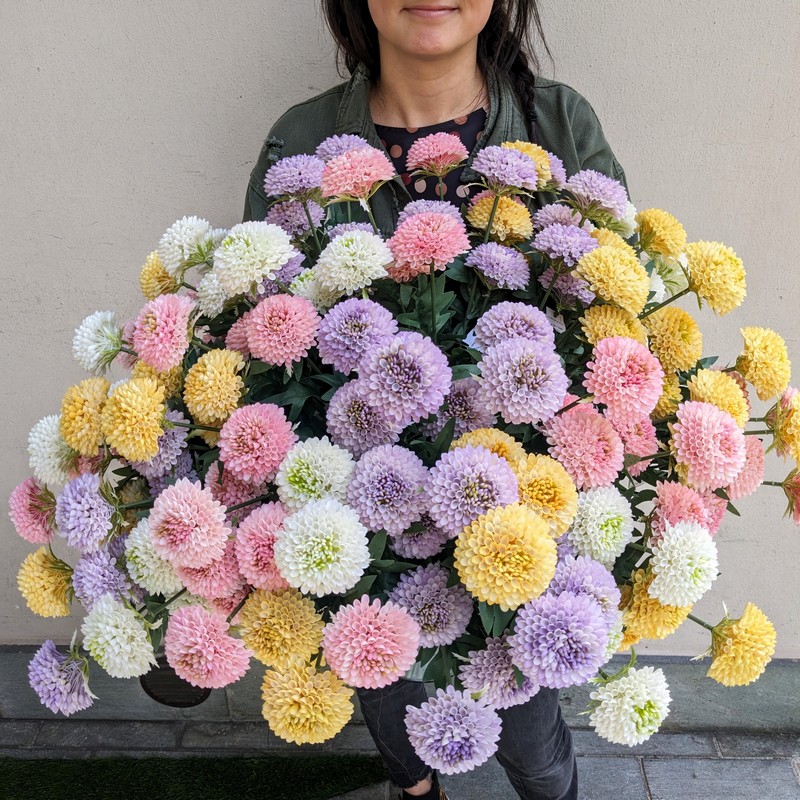 Ramo con fiori di dalia lilla, altezza 64 cm