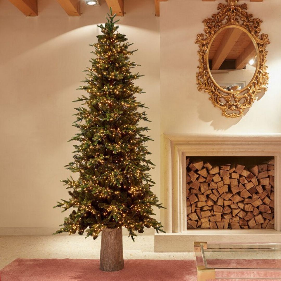 Albero di Natale pino verde slim luxury illuminato con 3000 luci LED (base tronco venduta separatamente)Altezza: 210 cm
