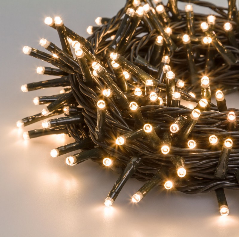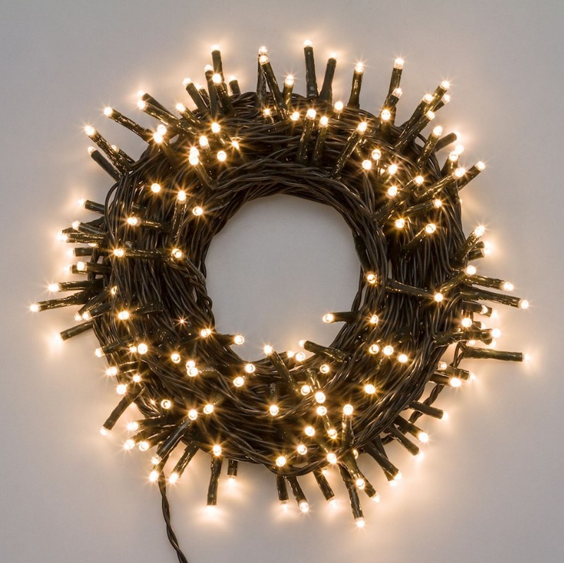 Catena luminosa con 180 led dalla luce calda con 8 giochi di luce, timer e filo verde