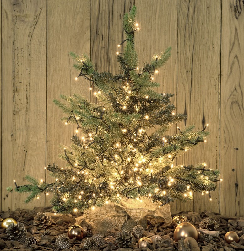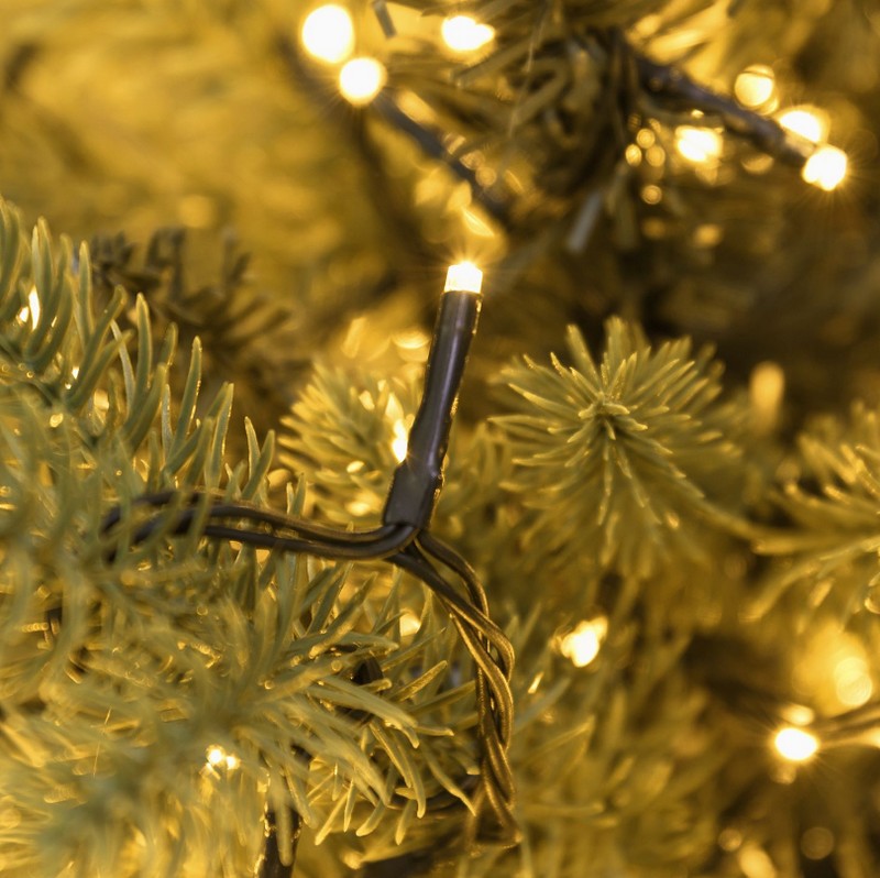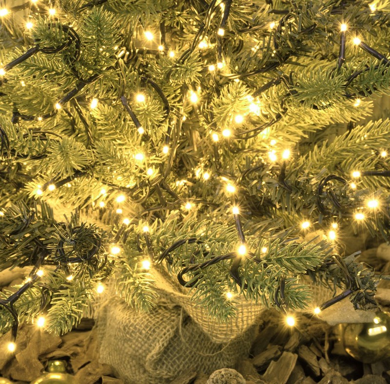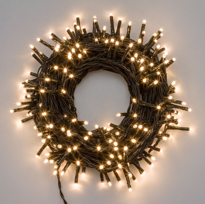 Catena luminosa con 360 led dalla luce calda con 8 giochi di luce, timer e filo verde