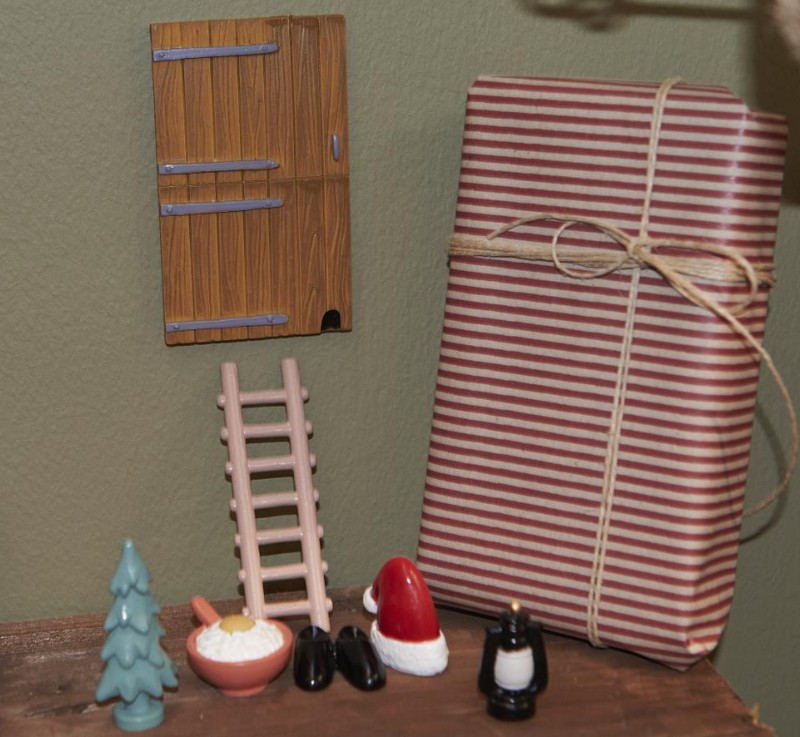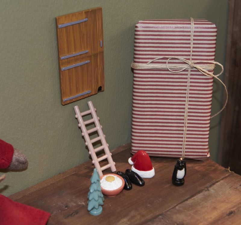 Dimensione : h.19x13.5 cmComposta da 7 pezzi: porta, scarpette dell'elfo, lanterna, scaletta, albero, cena dell'elfo, cappello