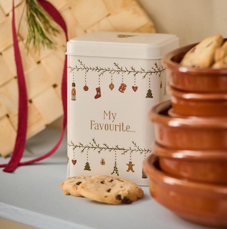 Barattolo da cucina in latta con decoro natalizio e scritta “My favourite…”