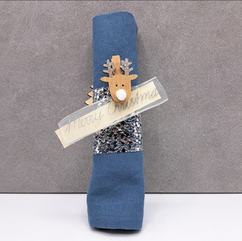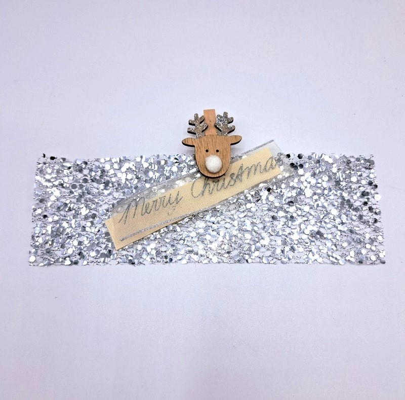 Legatovagliolo-segnaposto con clip RENNA MERRY CHRISTMAS