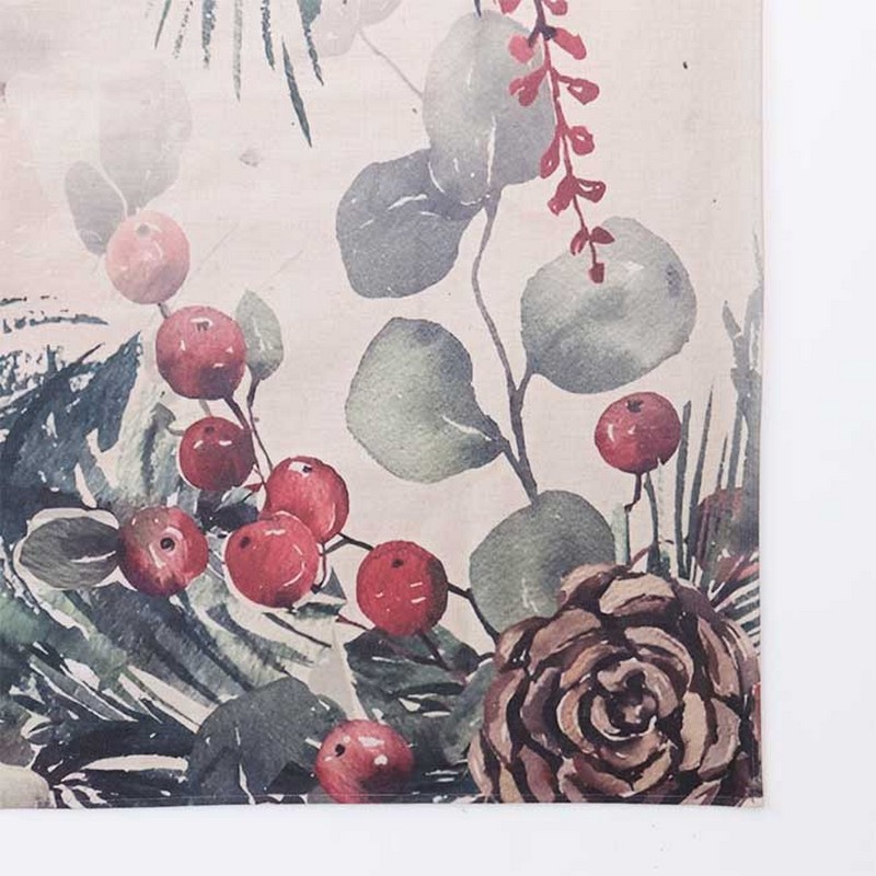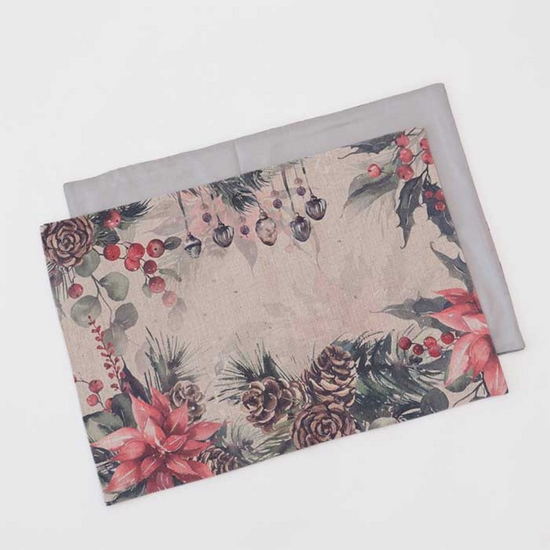 Tovaglietta antimacchia decorata a tema natalizio con agrifogli e pigne