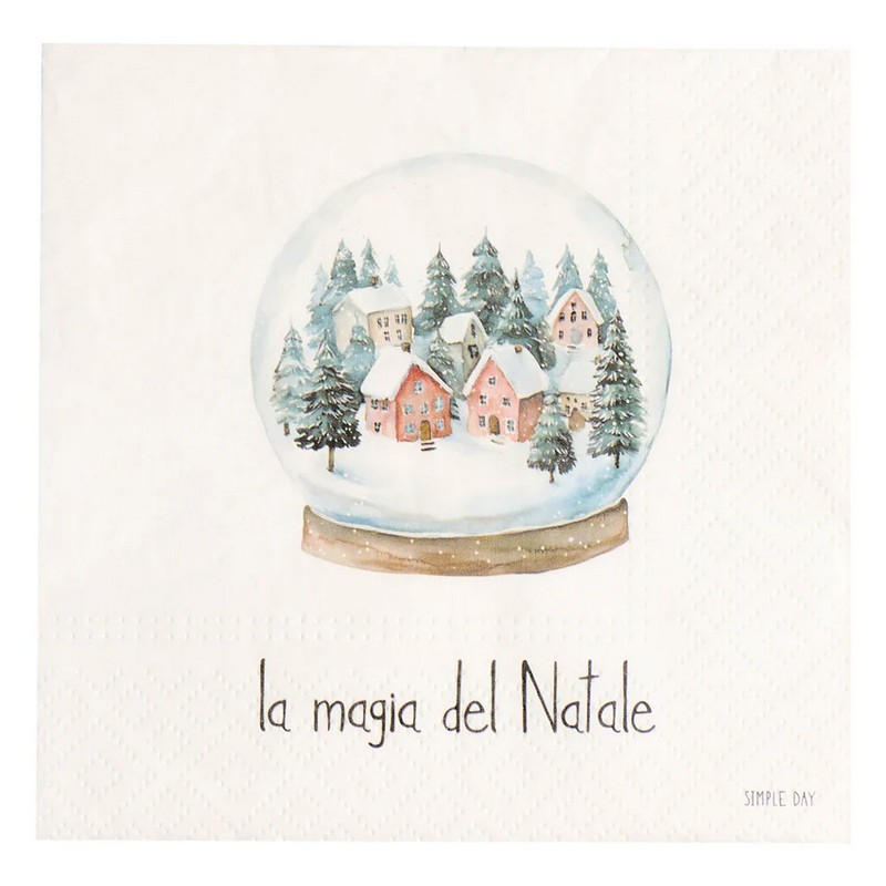 Set di 20 tovaglioli di carta decorati con boule de neige e scritta “La magia del Natale”