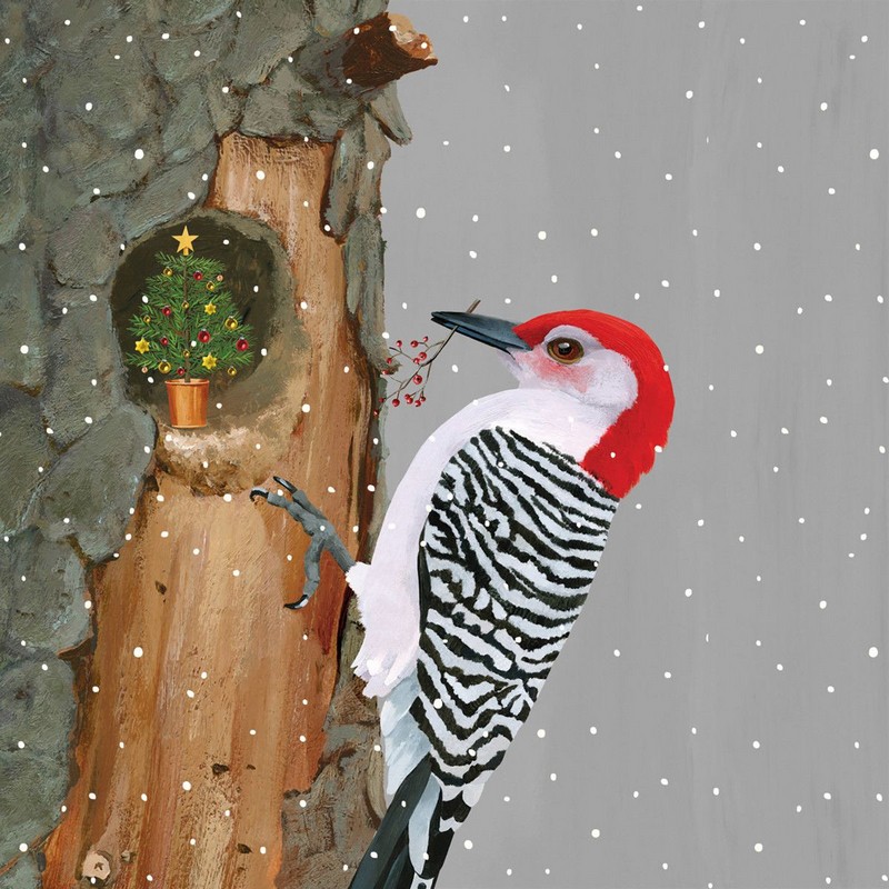 Tovaglioli di carta natalizi PICCHIO CON ALBERO DI NATALE