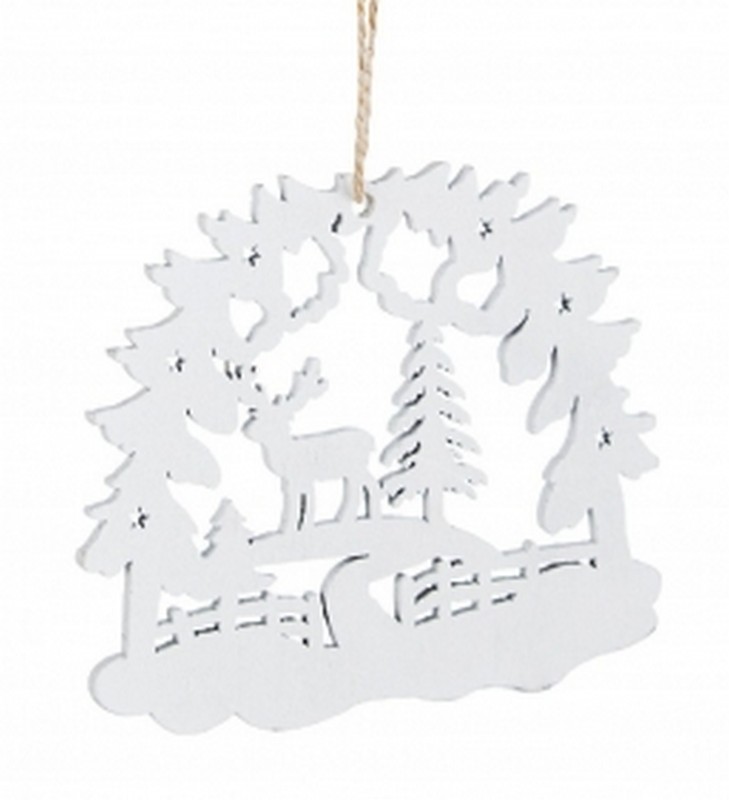 Set 6 paesaggi invernali con cervo e alberi in legno bianco da appendere