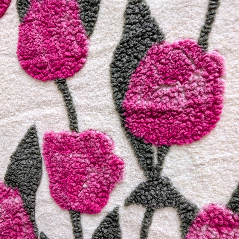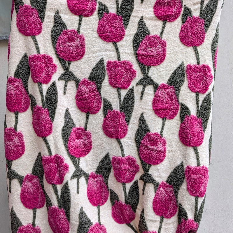 Coperta in lana cotta 150 x 200 cm con decoro di tulipani su fondo beige, fatta in Italia con lana italiana ecosostenibile e lavabile in lavatrice - una calda coperta matrimoniale di lana per letto o divano perfetta come idea regalo di Natale
