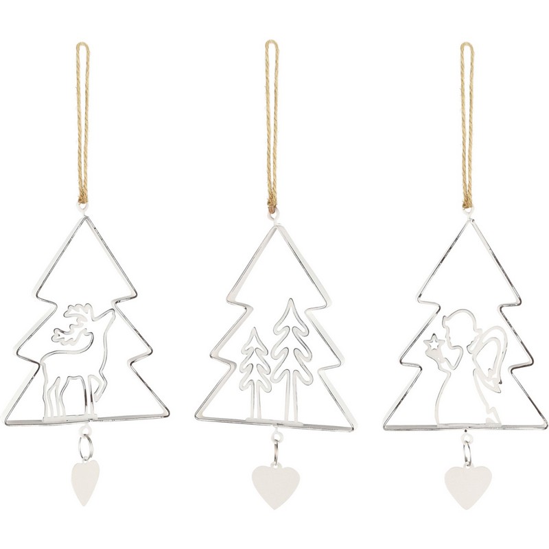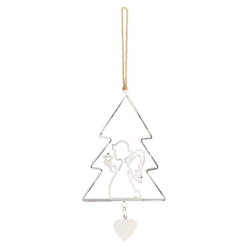 Decoro natalizio in metallo bianco da appendere a forma di albero decorato con angeloDimensioni: 11 x 1 x 9 cm