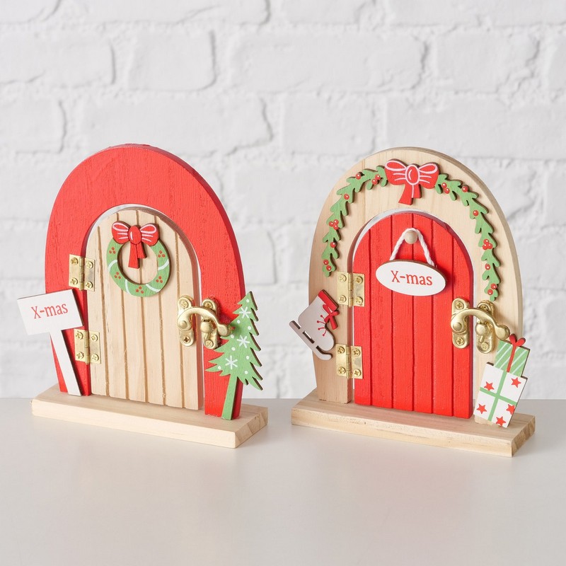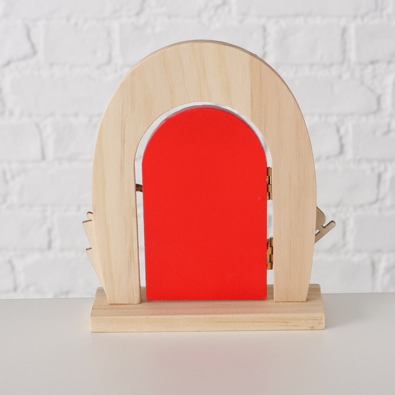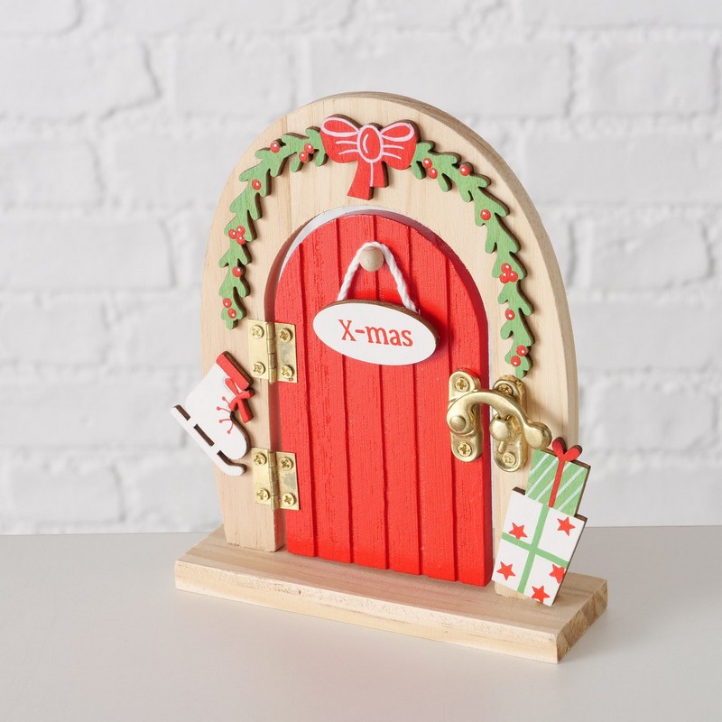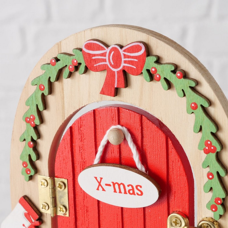 Porta decorativa in legno da appoggio per elfi di Natale.