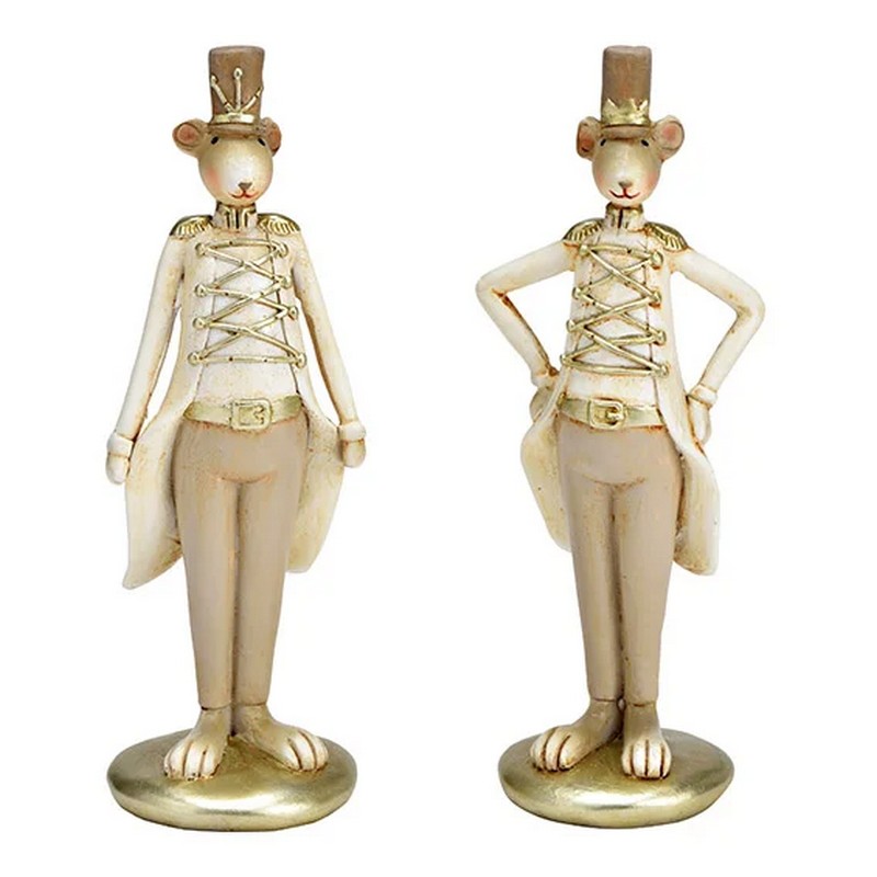 Topo beige, bianco e oro in resina vestito elegante con cappello assortito (2 varianti in pose diverse, verrà spedito in base alla disponibilità)