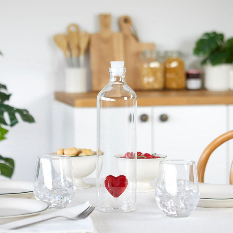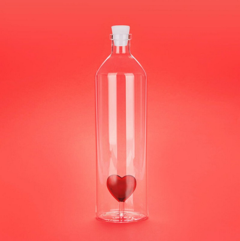 FATTA A MANO. Ogni bottiglia è attentamente realizzata a mano; il cuore rosso all’interno rende ogni pezzo unico.